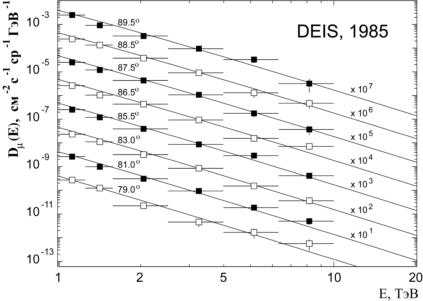 на различных глубинах при энергиях от 1 Тэв до 600 ТэВ. Основные