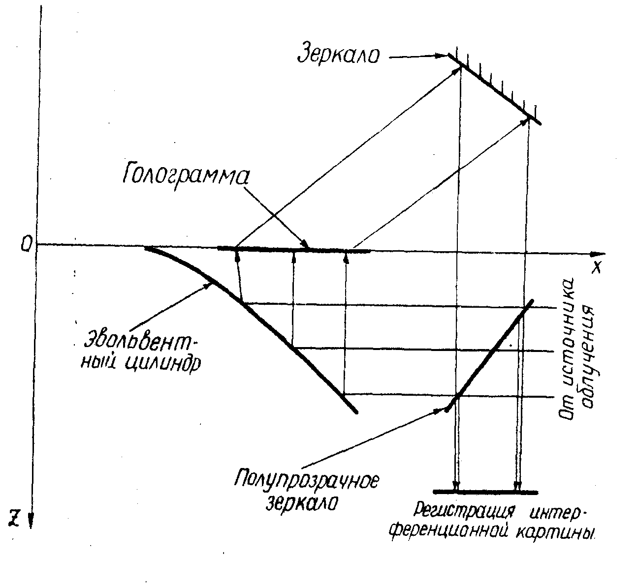 Рис.2. Схема аттестации образцовой эвольвентной поверхности с помощью голографического интерферометра.